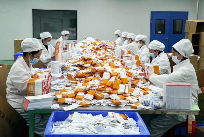 ▲東信藥業(yè)加緊生產(chǎn)抗疫急需藥品