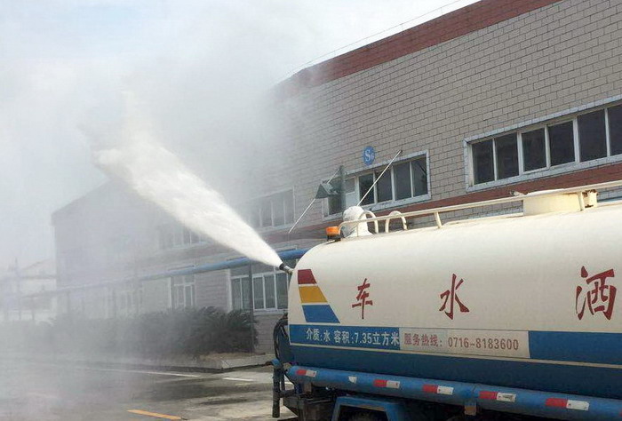 ▲東信藥業(yè)廠區(qū)噴灑消毒劑