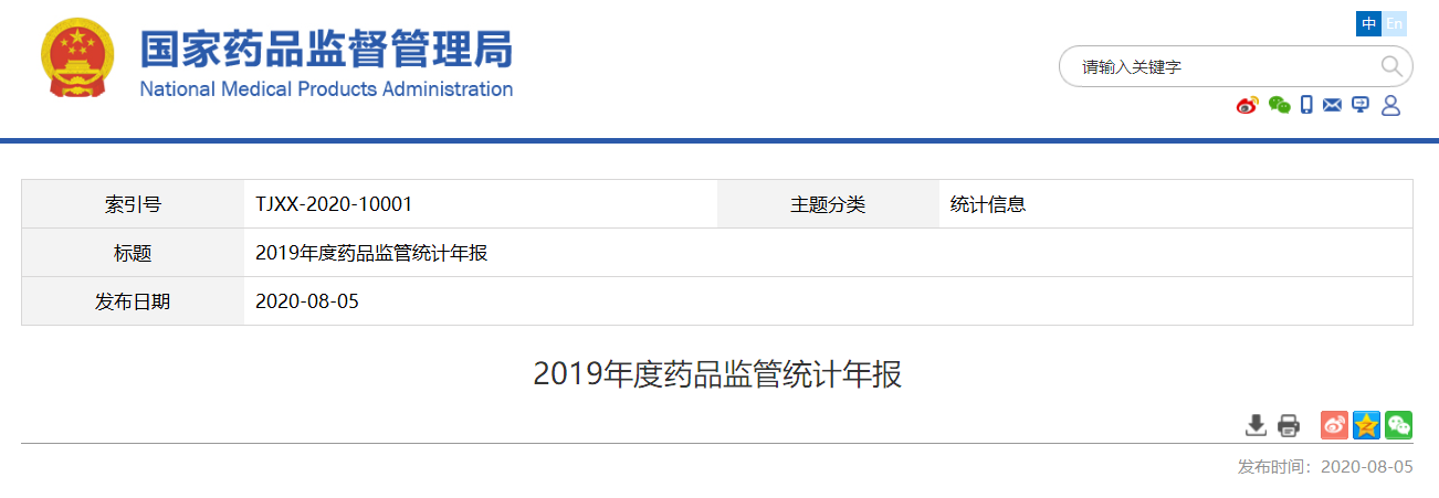 8月5日,國家藥監(jiān)局公布了《2019年度藥品監(jiān)管統(tǒng)計年報》(以下簡稱《年報》)。