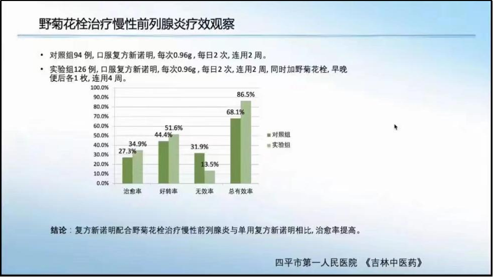 會中三位教授就前列腺炎的診斷原則和診斷方法、野菊花栓的抗炎抗病毒、臨床療效觀察作出研討,并做總結(jié)。