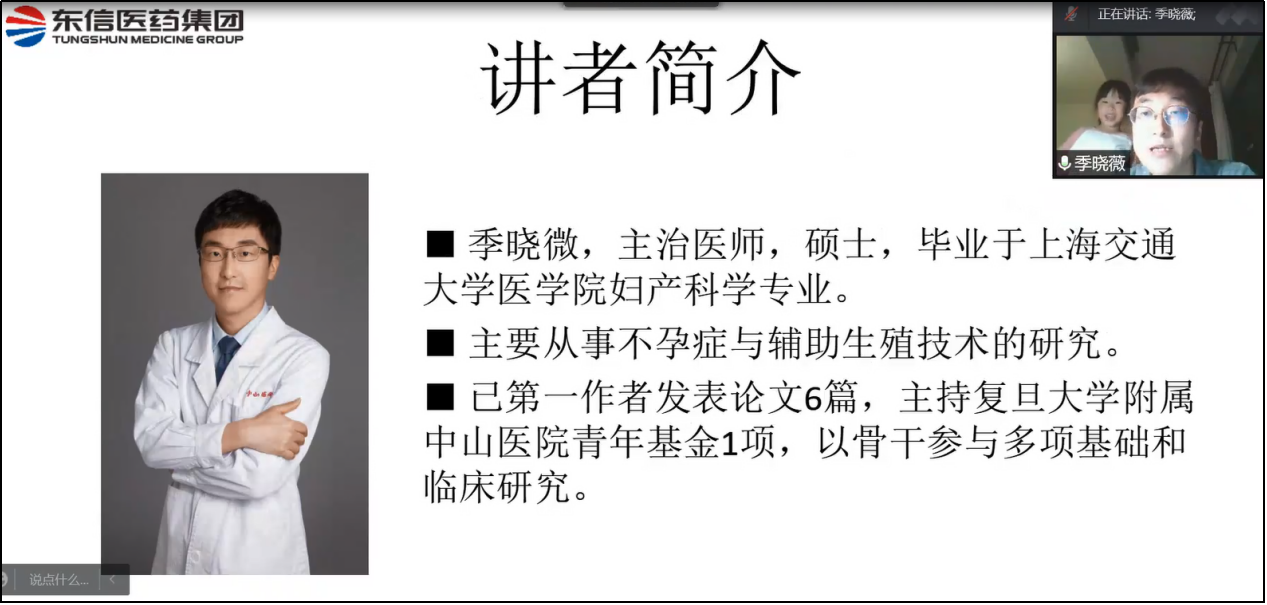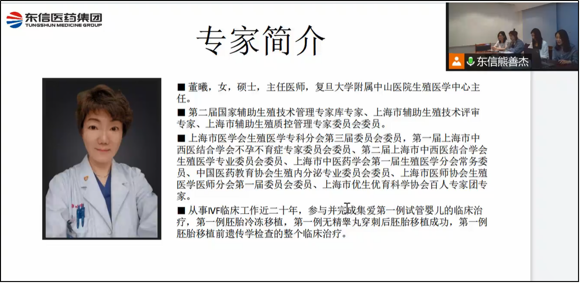 大會(huì)由東信醫(yī)藥商務(wù)部熊經(jīng)理主持,復(fù)旦大學(xué)附屬中山醫(yī)院生殖醫(yī)學(xué)中心董曦主任聯(lián)席主持,做會(huì)議主講人介紹。