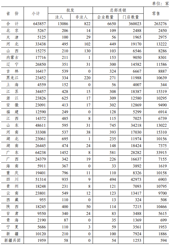 統(tǒng)計(jì)數(shù)據(jù)顯示:截至2022年12 月底,全國共有《藥品經(jīng)營許可證》持證企業(yè) 643857家。其中,批發(fā)企業(yè)13908家,零售連鎖總部 6650 家,零售連鎖門店 360023家,單體藥店 263276 家。