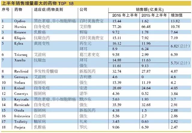 最近,各制藥公司的二季報陸續(xù)出爐,F(xiàn)irstWord網(wǎng)站通過比較各種藥物與去年上半年相比的銷售額增加值,列出了今年上半年銷售增量最大的18種藥物。