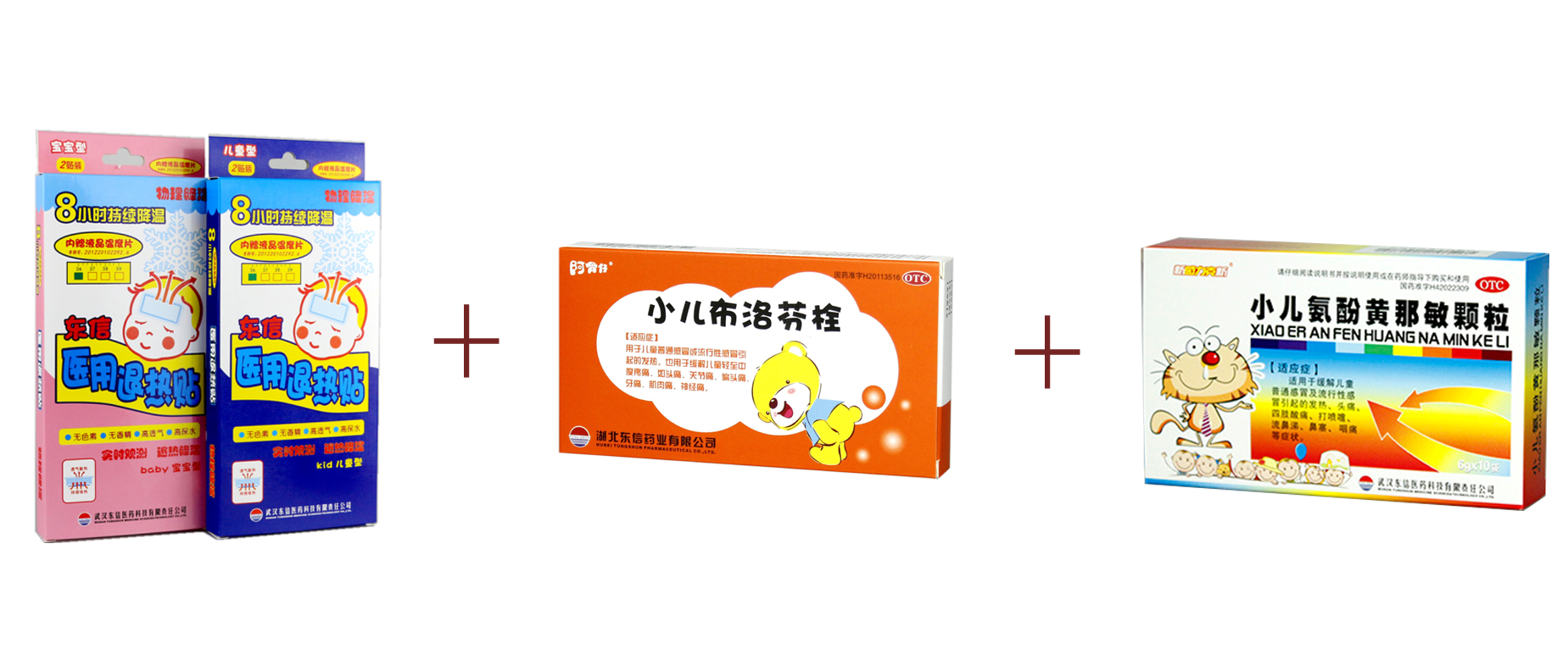 東信醫(yī)用退熱貼+小兒布洛芬栓+小兒氨酚黃那敏顆粒