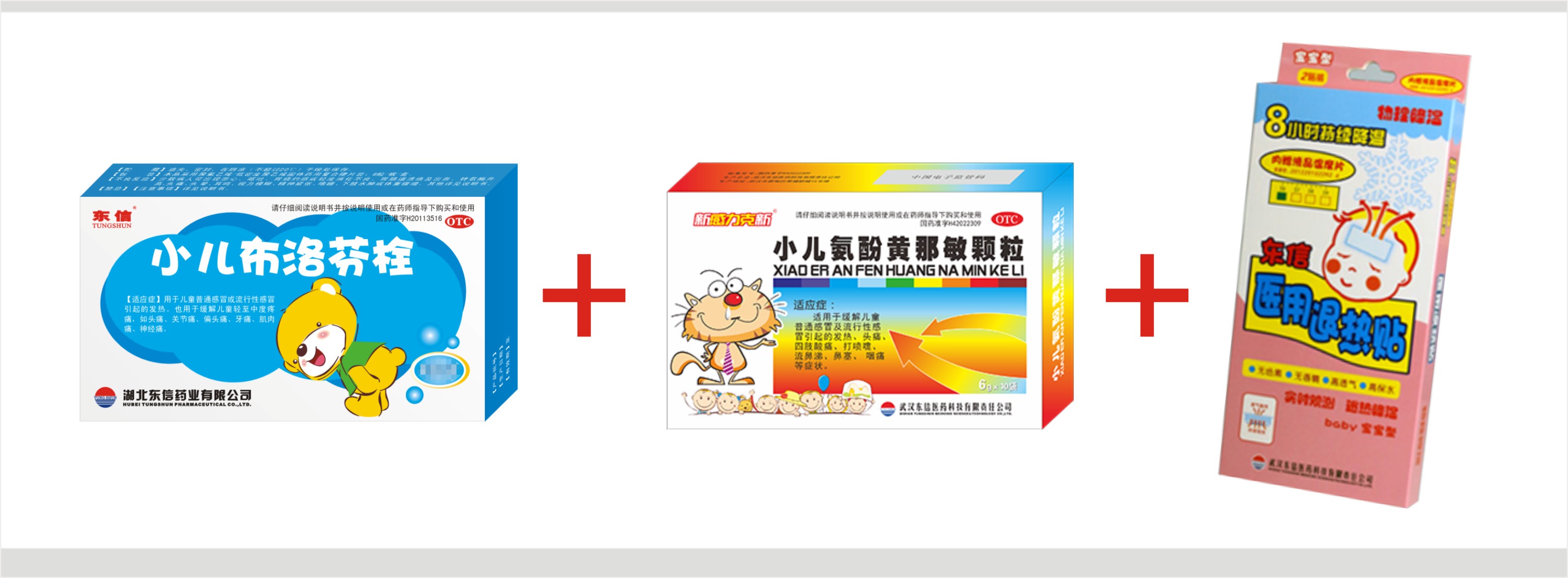小兒布洛芬栓+小兒氨酚黃那敏顆粒+小兒退熱貼