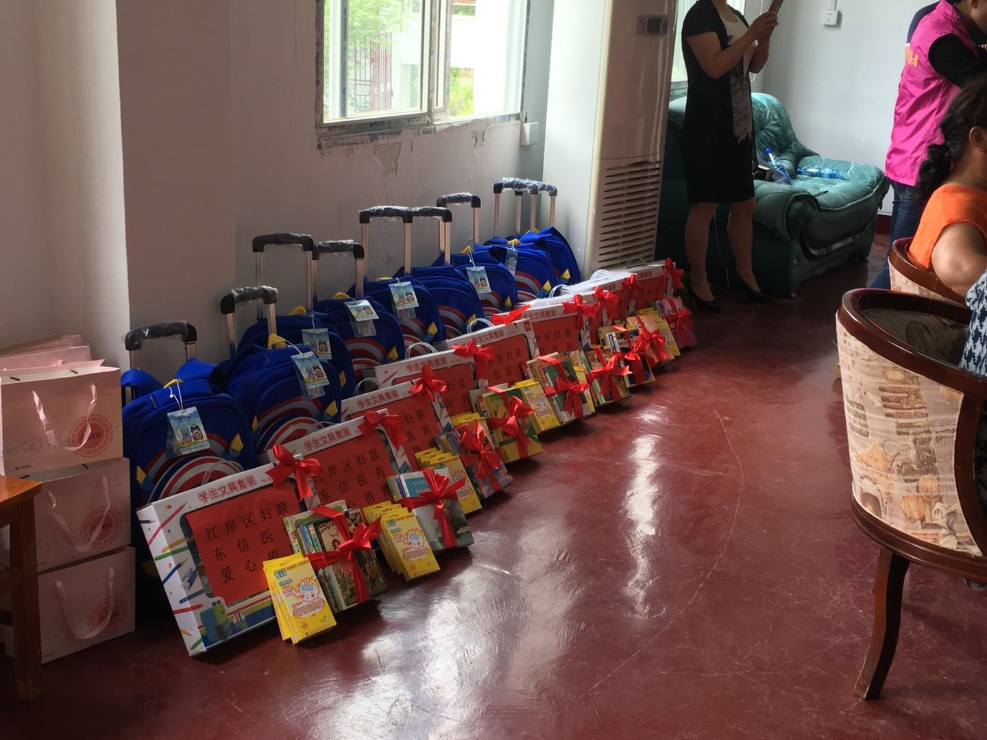 東信醫(yī)藥集團(tuán)巾幗志愿者發(fā)動全體東信人為孩子們捐贈讀本及繪本,并在扉頁上留下對孩子們的美好祝福。志愿者們不僅為孩子們帶去了祝福和關(guān)愛,并為9名留守兒童送上價(jià)值近5000元的學(xué)習(xí)生活用品。