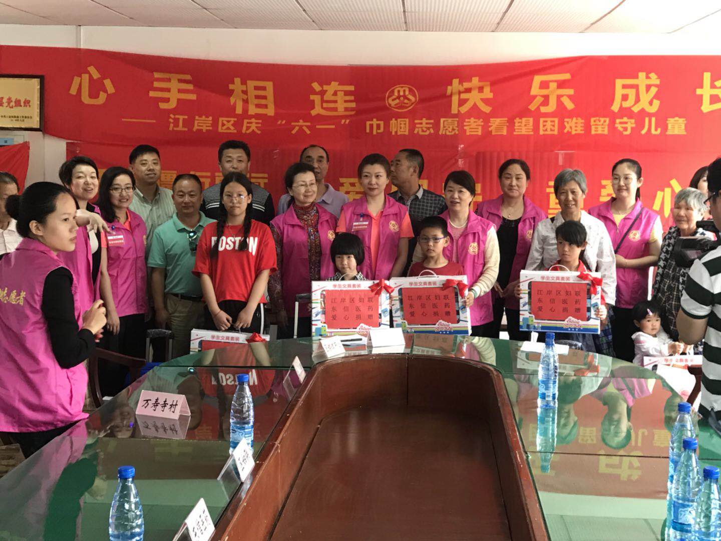 活動首先由萬壽寺村委向參加活動的志愿者們介紹了村基本情況和開展精準(zhǔn)扶貧3年來取得的主要成效;區(qū)婦聯(lián)兼職副主席、湖北東信醫(yī)藥有限公司董事長田南希代表江岸區(qū)婦聯(lián)為孩子們送上了組織的殷切祝福;孩子和老人們非常感謝江岸區(qū)婦聯(lián)和湖北東信醫(yī)藥有限公司對留守兒童物資上給予資助和精神上的關(guān)愛。紛紛表示:將不負(fù)重托,好好學(xué)習(xí)、天天向上,以優(yōu)異的成績報(bào)答父母的養(yǎng)育之恩和社會各界的關(guān)愛之情!