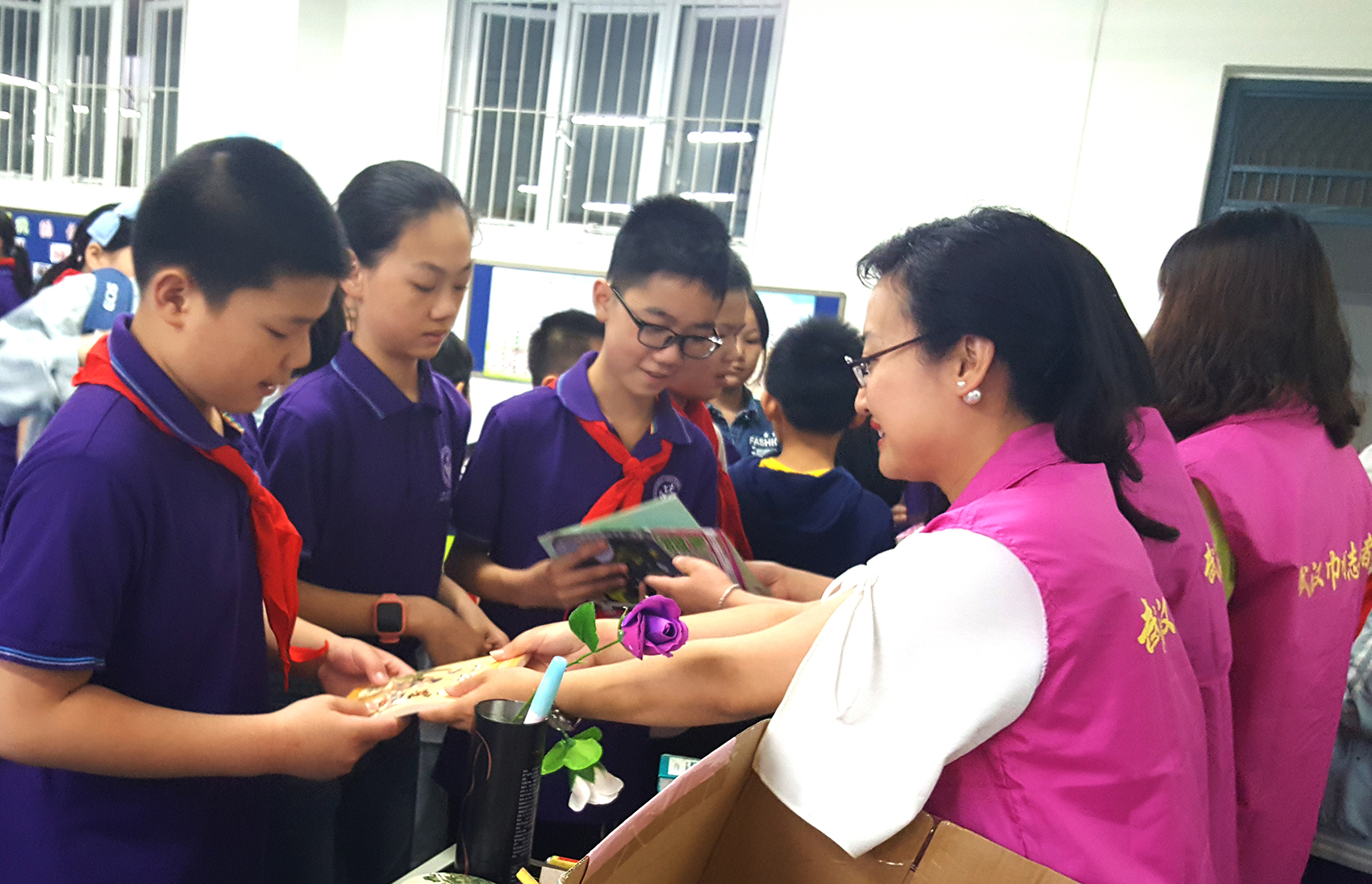 活動當(dāng)天,東信巾幗志愿者們?yōu)楹⒆觽冑浰土藢憹M祝福的書籍,希望他們不但能沉浸在快樂的閱讀中,也能從書本中獲得成長的動力。