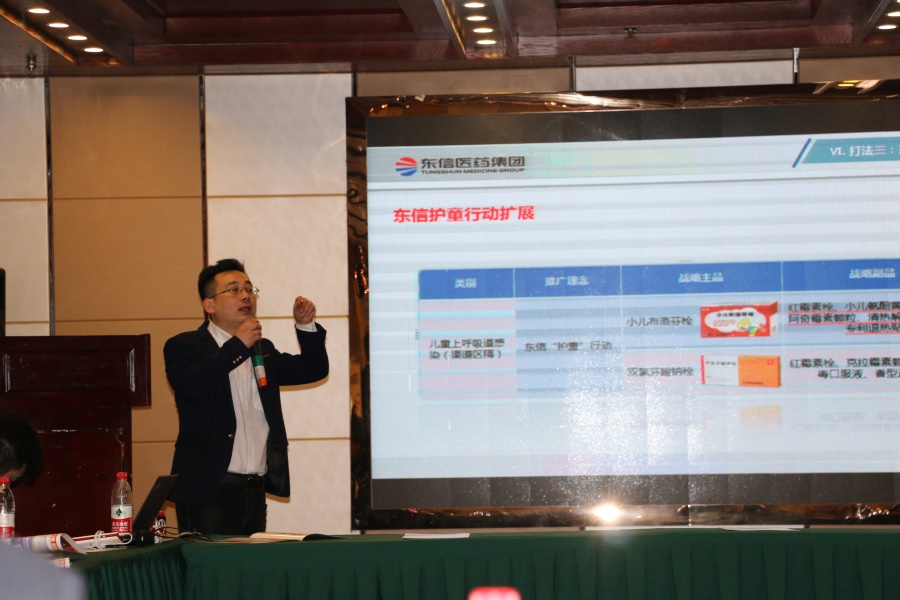 東信醫(yī)藥OTC部南區(qū)銷售總監(jiān)宋于祥介紹了東信醫(yī)藥集團(tuán)的發(fā)展概況,通過PPT講解、播放宣傳片等多種形式展示了東信醫(yī)藥在栓劑、婦兒外用產(chǎn)品領(lǐng)域的領(lǐng)先優(yōu)勢及集團(tuán)的發(fā)展前景。